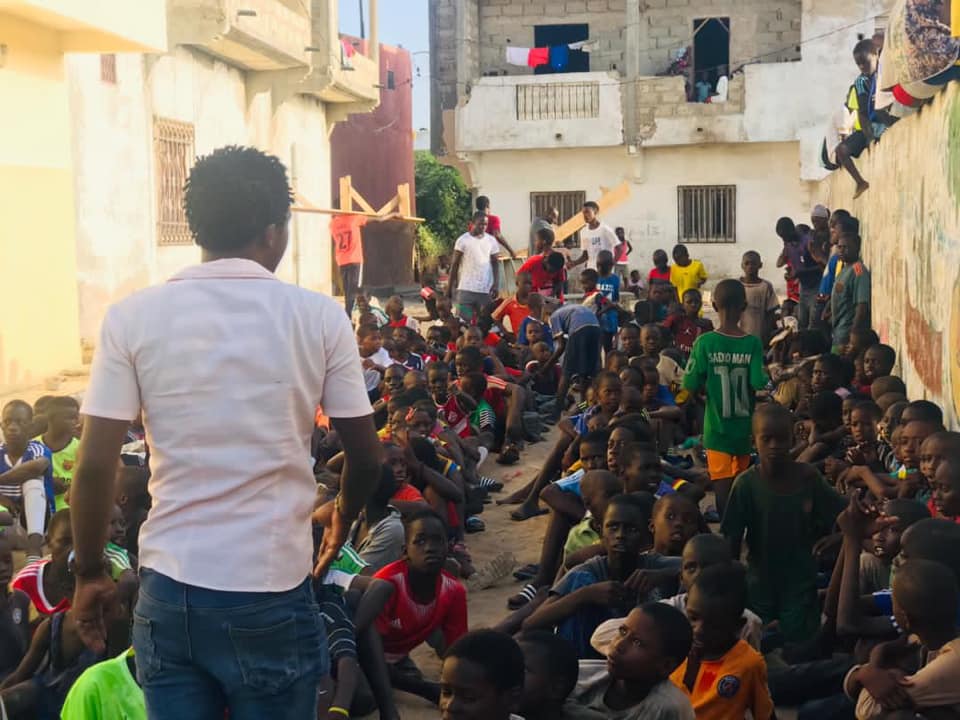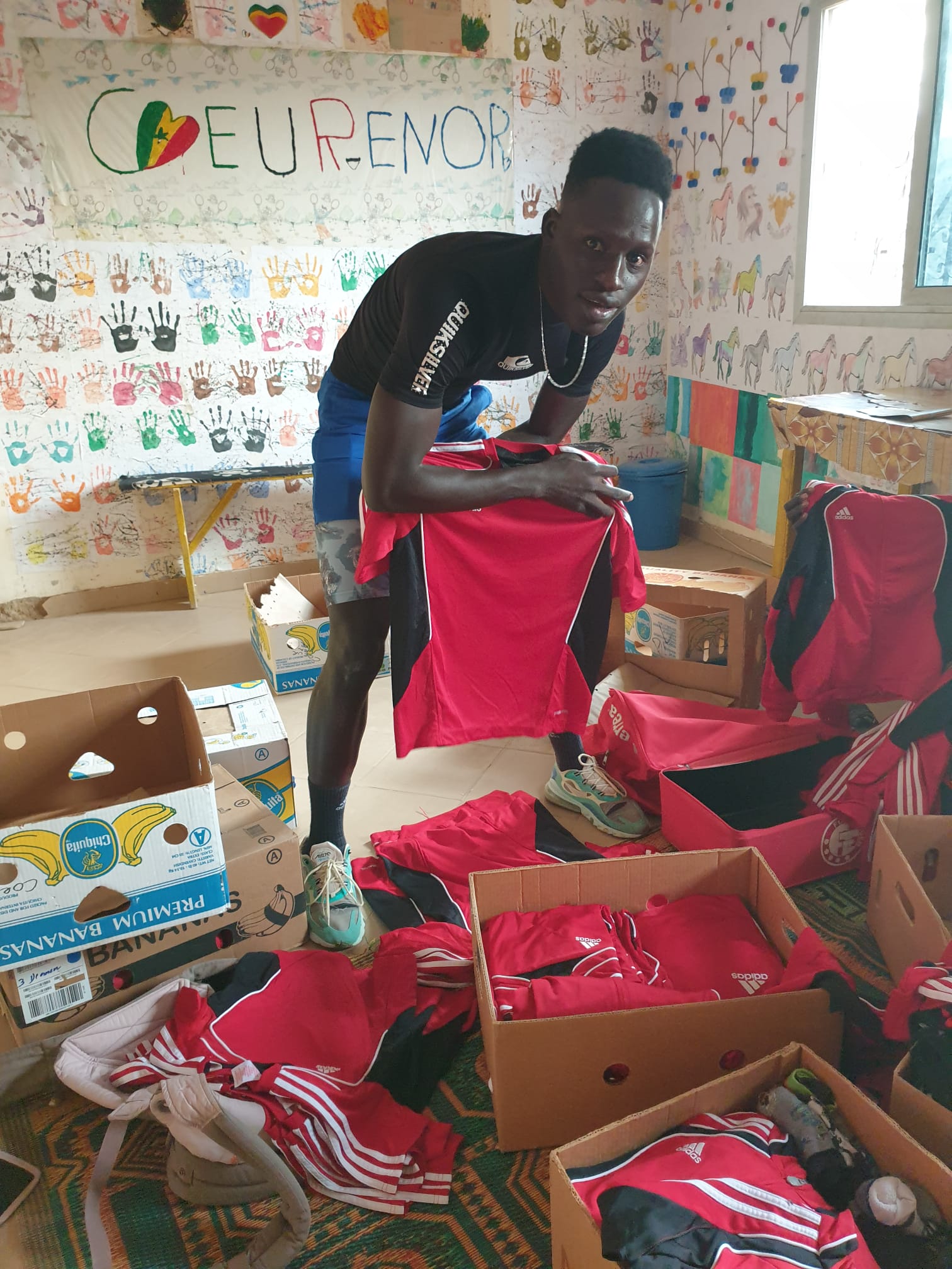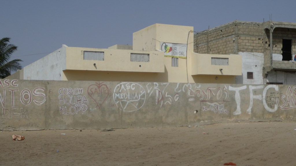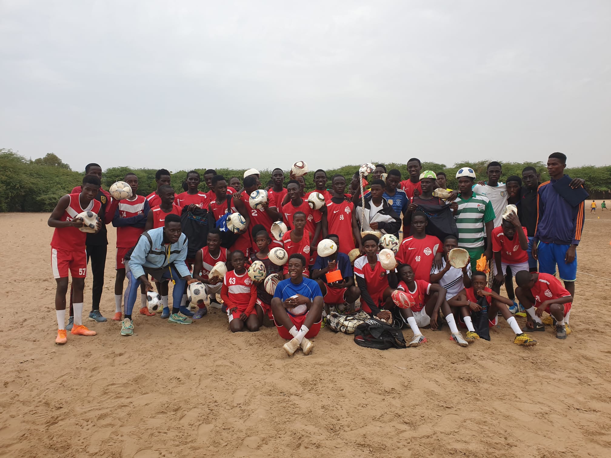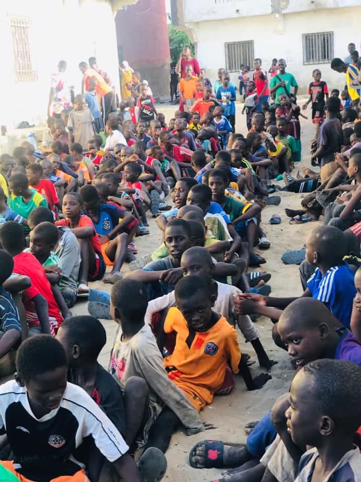 Die neuen Bälle von der UEFA sind tendenziell etwas zu weich für die Trainings. Umso besser – dann können wir diese Bälle zum spielen für die Talibes gebrauchen. Wir haben so viele Bälle, dass wir sogar Bälle als Preise für Wettbewerbspreise nutzten können. Jedoch die Fussballkits von der UEFA mit Überzug-Shirts, ‚Töggel‘ und Goals haben ihn zum Strahlen gebracht.