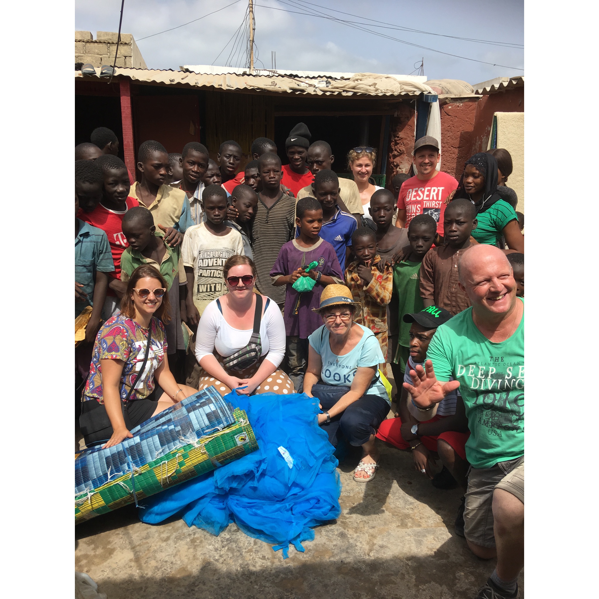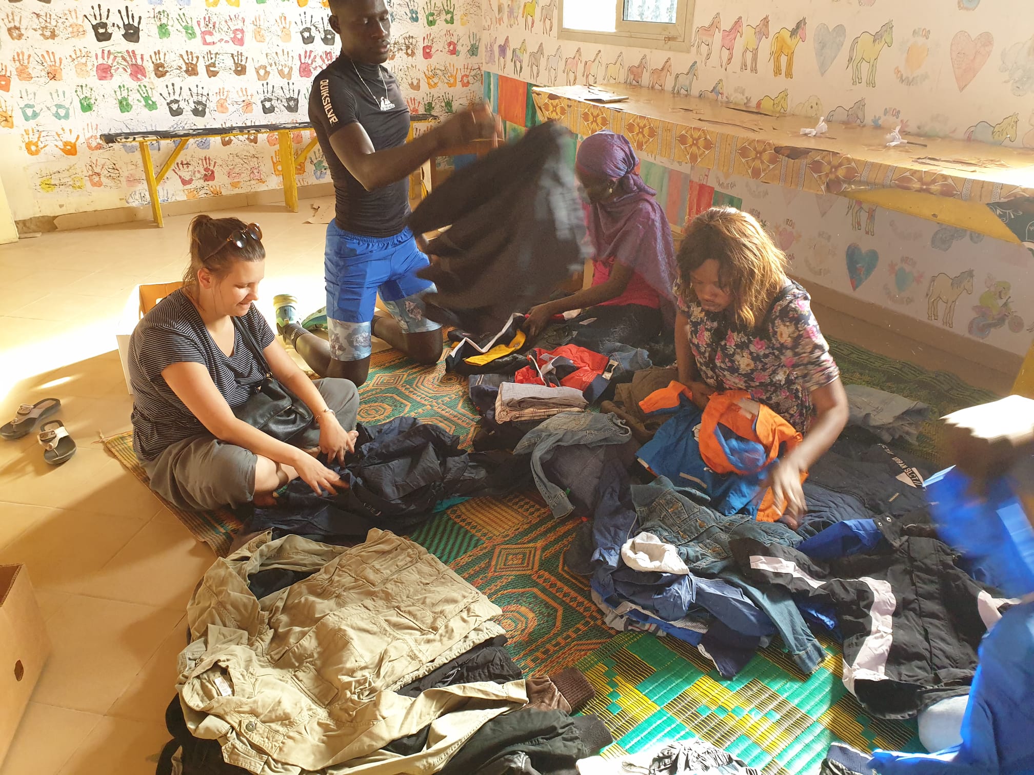 Die Temperatur ist zwar sehr angenehm, trotzdem trage ich gegen den Abend lange Hosen und eine leichte Jacke. Die Talibes sind wie so oft mit ihren Fussballdresses mit kurzen Hosen und Tshirt. Wir haben daher entschieden, als erstes Hosen und Jacken zu verteilen.