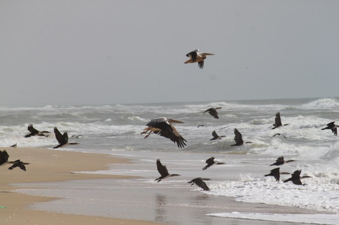 Für den Sonntag haben wir uns vorgenommen einen Ausflug zu machen. Wir bestellten ein Taxi und fuhren damit zur Zebrabar. Die Zebrabar liegt etwa 30 Minuten ausserhalb von Saint Louis, direkt am Fluss. Sie wurde vor über 20 Jahren von einem Schweizer Ehepaar gebaut und seither leben sie mit ihrer Familie da. Direkt nach der Ankunft suchten wir unseren Pirroquier, den Fährenmann, um mit ihm über den Fluss zu tuckern. Auf der anderen Flussseite gibt es eine kleine Insel. Diese liegt zwischen dem Meer und dem Fluss und zwischen dem künstlichen Ausgang des Flusses ins Meer und dem ursprünglichen Ausgang. Auf dieser Insel konnten wir viele Vögel beobachten, unter anderem auch Pelikane und Kormorane. Den Rückweg von der Strandseite zur Flussseite führte durch „Gestrüpp“. Der Pirroquier erzählte uns vorher, dass es keine Schlangen auf der Insel gibt. Wir hofften, dass die Aussage korrekt war, unsere Schuhe waren nämlich im Schiff geblieben… Schlussendlich sind wir ohne Schlange zu sehen zurück zur Zebrabar gefahren und genossen ein feines Mittagessen.